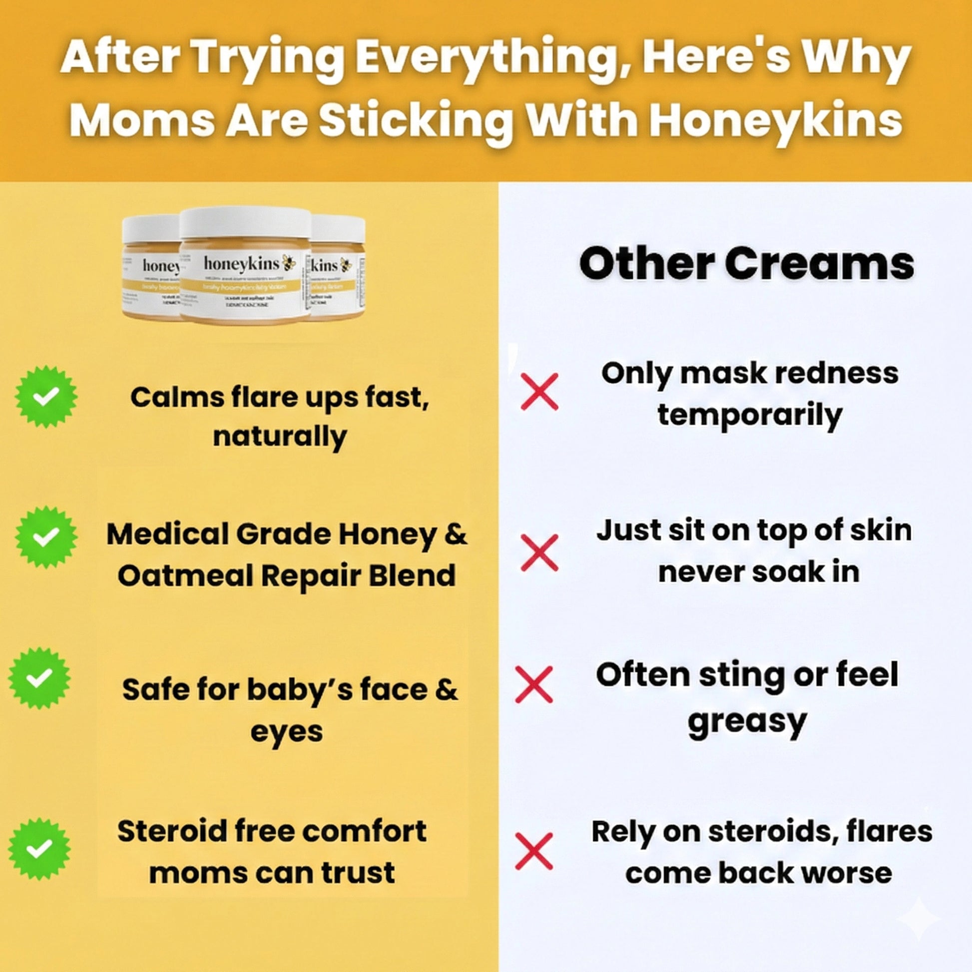• "Even steroid crerams never cleared his skin like this! Honeykins Eczema Cream Cream has been LIFE CHANGING for us"